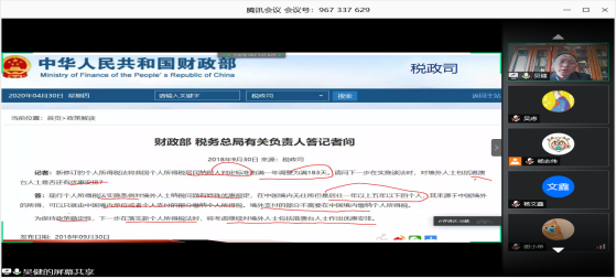 邀请,国家税务总局税务干部进修学院兼职研究员、江苏省省级“稽查能手”、国家税务总局所得税人才库成员吴健高级会计师通过腾讯会议为学院师生作了题为“从首次综合所得汇算清缴看个人所得税制改革与完善”的线上讲座。学院部分教师和19级税务专业硕士研究生等参加了讲座。
