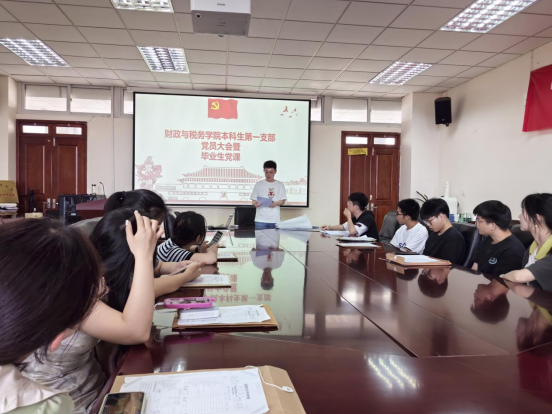本科生第一党支部书记、毕业班辅导员张周驰于德经楼408会议室为学院毕业生党员上“最后一课”,讲授专题纪律党课。张周驰老师深情寄语即将奔赴工作岗位的毕业生党员们,学习《条例》关键是要将学习理解和贯彻执行结合起来,以更加务实的态度、勤奋的精神、廉洁的作风投入到未来的工作之中,用忠诚、干净、担当书写共产党员的育人生涯。