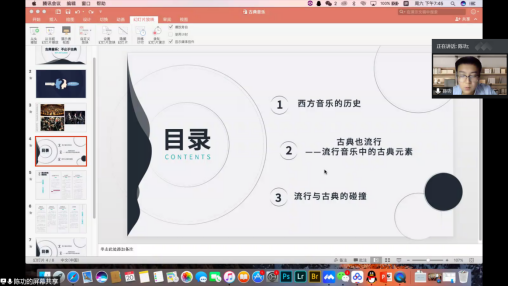 交流中,陈功老师从动画片《猫和老鼠》的配乐切入,用同学们熟悉的场景还原交响乐演奏,带大家走进古典音乐的另一面。陈功老师从西方音乐的历史,流行音乐中的古典元素以及流行音乐与古典音乐的碰撞三个方面向同学们生动地展现了古典音乐的魅力。