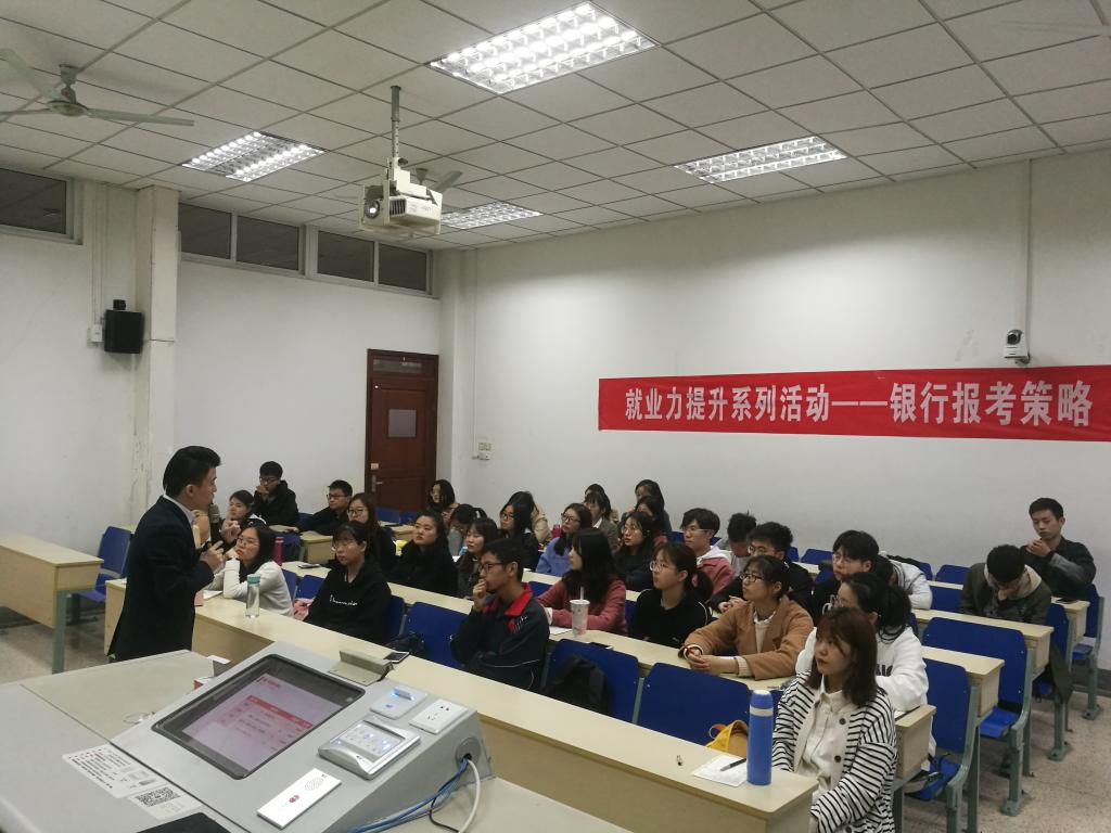、公共管理学院、信息工程学院、应用数学学院的部分有志于银行就业的本科生聆听了讲座。