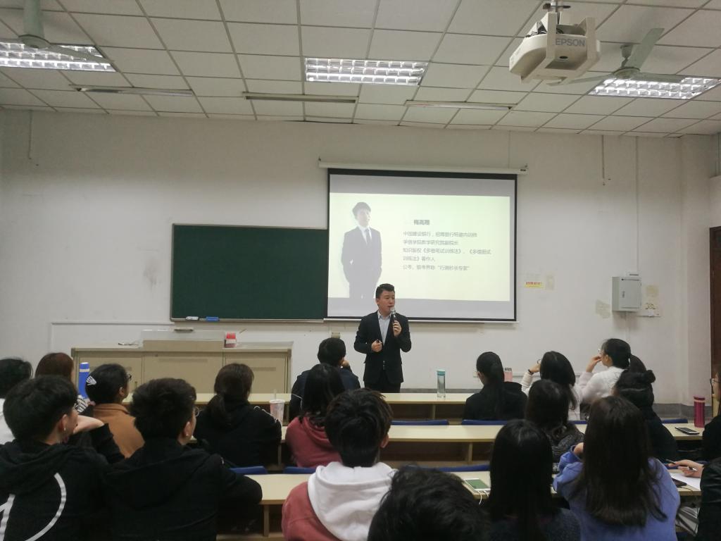 就业力提升系列讲座第一讲——银行报考策略讲座在德经楼110教室举行,讲座邀请了在银考界被称为“行测秒杀专家”的梅高翔老师主讲。51看片