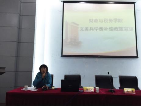 在经济学科楼报告厅召开2012级大学生参军入伍政策宣讲会,2012级辅导员李玲老师主持会议。
