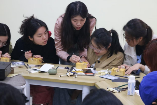 的师生们一同在仙林校区中苑6号站公寓党建工作站“初心小站”举办了一场别开生面的“感恩浸润方寸间,匠心镌刻财税情”主题篆刻活动,在方寸的篆刻之间表达对母亲的感恩之情和节日的祝福,上了一堂“方寸间的思政课”。