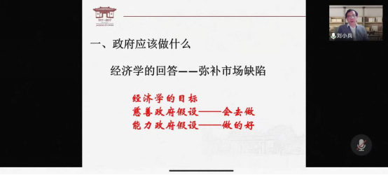 讲座伊始,刘教授与学院师生分享了自身经历与背景,并以此引入讲座主题,生动形象地展示了三个方面的内容。首先,政府应该做什么。经济学普遍认为政府应该弥补市场缺陷,刘教授特别提醒到,需要重点关注这一概念背后涵盖的两个假设:慈善政府假设和能力政府假设。其次,政府实际上会做什么。刘教授介绍分享了一些研究理论:布坎南“慈善政府&经济人政府”理论、米尔顿·弗里德曼“花钱模型”、马基雅维利《君主论》以及商鞅《商君书》。最后,如何让政府做它该做的事。刘教授讲到:一方面,依法治国,把权力关进制度的笼子;另一方面,以德治国。如何选择与平衡这两个方面,需要大家根据实践与历史来观察。