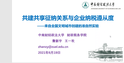 、公共财政研究中心、中国财税治理研究院邀请,中南财经政法大学博士生导师詹新宇教授通过腾讯会议,作了题为“共建共享征纳关系与企业纳税遵从度——来自全国文明城市创建的准自然实验”的线上学术讲座。讲座由51看片