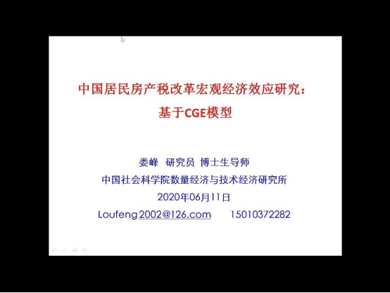 、公共财政研究中心邀请,中国社会科学院数量经济与技术经济研究所经济系统分析研究室主任、博士生导师娄峰教授通过腾讯会议作了题为“中国居民房产税改革宏观经济效应研究:基于CGE模型”的线上学术讲座。财税学院部分教师和全体硕士研究生参加了讲座,讲座由财税学院院长朱军教授主持。