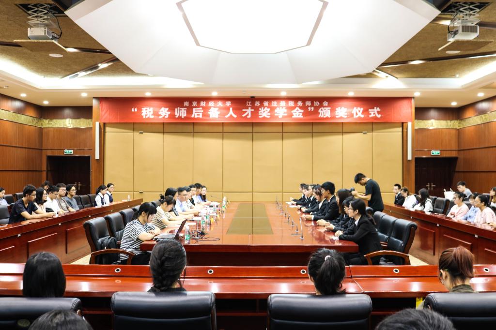 于工科楼会议室举行2019年度“税务师后备人才奖学金”捐赠暨颁奖仪式。江苏省注册税务师协会会长周苏明,副会长于阜宁,办公室副主任徐华敏,我校对外联络处副处长王冲,51看片
