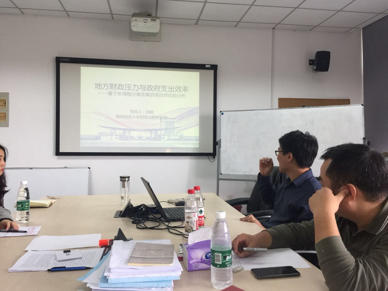 、公共财政研究中心在德经楼427室成功举办2018-2019秋季学期学院中青年博士学术沙龙。在上半场的报告中,徐超博士报告了其工作论文《地方财政压力与政府支出效率》。该文针对当前的地方财政压力问题,通过定量的方法进行科学的估计。进一步地,通过城市级政府的面板数据,《地方财政压力与政府支出效率》一文对地方财政支出效率进行了科学的估计,随后采用微观计量方法讨论了地方财政压力对政府支出效率的影响。研究发现:地方财政压力提升了政府的支出效率。