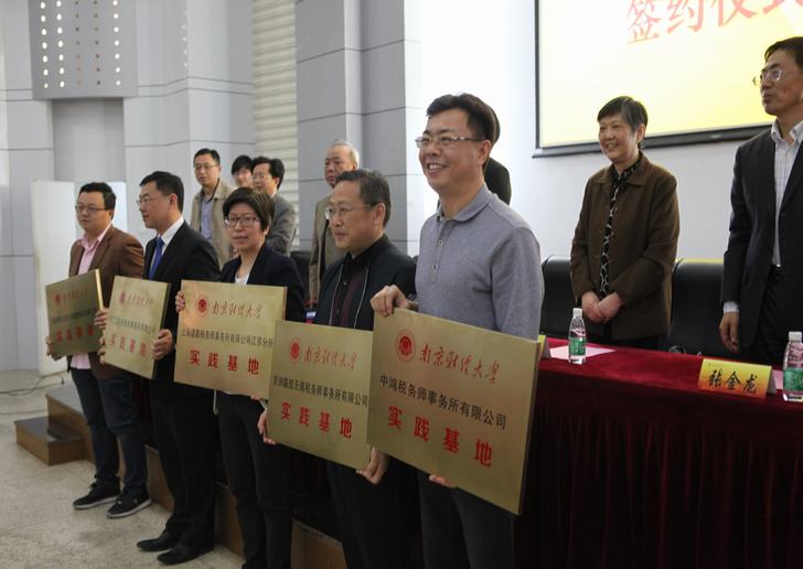 党委书记张金龙、院长李林木分别为江苏省注册税务师协会相关会员单位进行社会实践基地授牌。