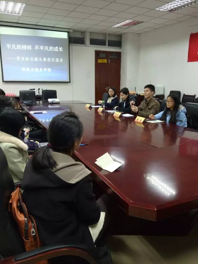 在经济学科楼408会议室举办了“平凡的榜样·不平凡的成长——学业标兵励志典型交流会”。本次交流会主要针对贫困生的学业规划、学习技巧等问题进行了分享和探讨。在我校第一届励志成才典型人物中获选“学业标兵”的国际经济与贸易学院14级韩燕同学、会计学院14级曹艺同学、以及金融学院15级陈泽田同学应邀参加交流会,学院党委副书记陈苏及2015级、2016级的部分受助学生参加了分享交流会。会议由陈苏副书记主持。