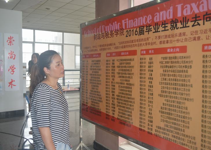“2016届毕业生升学出国表彰榜”和“2016届毕业生就业去向汇总榜”,引导学生逐步树立努力目标与方向。同时,向新生及家长介绍了学院设立的“精英培育人才”奖学金、“读史研税 济困助学基金”、“卓成规划设计助学金”、“京洲联信助学金”等四项奖助学金,鼓励品学兼优、积极向上、志向远大的学生,展示学院对优秀学生尤其是家庭经济困难生提供重点帮助与支持。