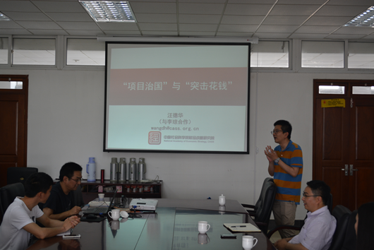 首先,汪教授谈到了最近几年每到年末就会被舆论关注的“突击花钱”问题,并分享了他作此研究的动机。汪教授深入浅出的介绍了“突击花钱”的含义:年末支出比重高,年初支出比重低,实质是预算执行进度问题。并指出研究的动机在于“突击花钱”是我国财政领域的牛皮癣问题,且到目前为止对于“突击花钱”的原因少有规范的学术研究。对此,汪教授指出从实务部门探析的原因有:预算难编;转移支付难测;二次财权之乱;项目与资金之争等。而其中,我国项目支出的比重较高,因此文章主要考察“项目治国”与“突击花钱”的关系。针对“项目治国”,汪教授倾向于我国目前是“行政发包制”加“项目治国”的国家治理模式,并指出项目是各级政府推动事业发展的抓手。