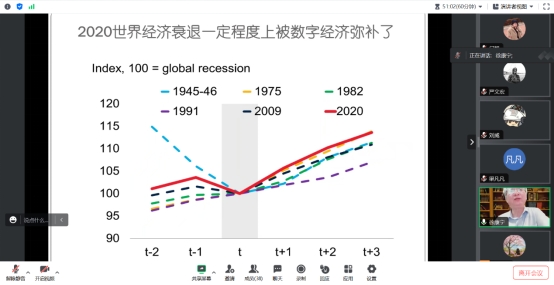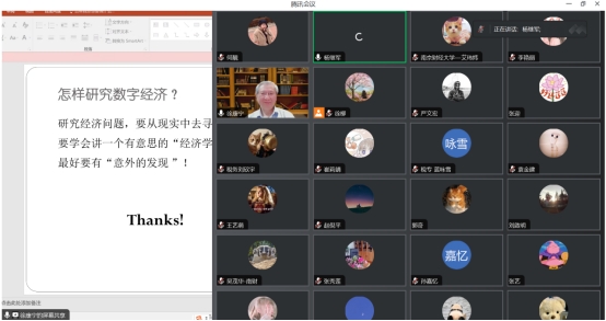 徐康宁教授的学术讲座条理清晰,围绕数字经济的课题,从源起、三个发展阶段、改变世界的方法、发展趋势四个方面使我们较为全面了解了数字经济的前沿和业态。