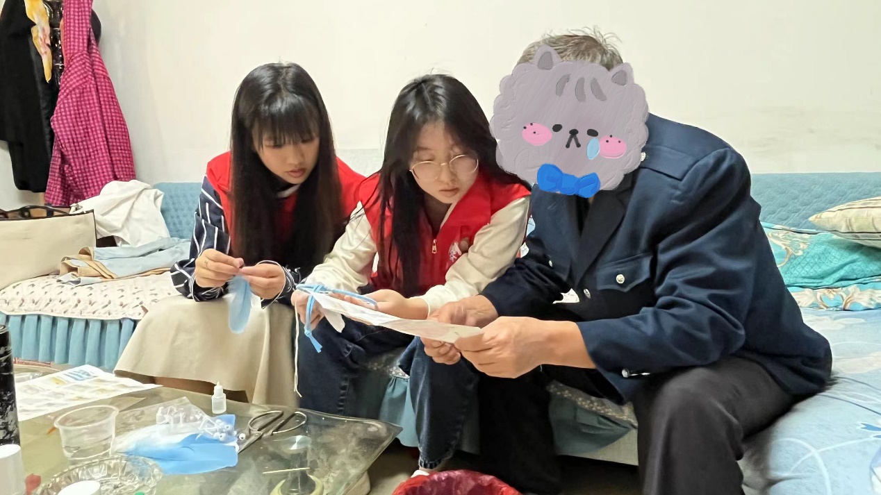 学雷锋纪念日前夕,大学生们来到了五福家园住宅小区,登门拜访吴老爷爷,由于年岁已高,吴爷爷不久前住院治疗了一段时间、刚刚顺利出院,身体尚未完全恢复,但看到志愿者们前来上门拜访,吴爷爷还是由衷地感到开心并热情地招呼同学们不要拘束。此次前来,不仅为吴爷爷带来了牛奶、水果、桃酥、枣泥饼等慰问品,志愿者们还在社区老师的带领下,陪同老人家完成了“舞龙”的小手工。吴爷爷还与志愿者们热情交谈,分享了自己年轻时候的经历以及生活近况等。吴爷爷长期独居生活,因此每次志愿者们上门拜访,都为这间往日清冷的屋子增添了许多欢声笑语。与吴爷爷告别时,老人也紧紧握住志愿者们的手,表达了对来看望他的同学们的感谢并且由衷地欢迎同学们常来看望他。
