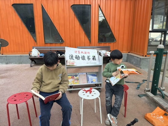 通过先行开展的“爱心税”活动募集到数十本儿童读物,于社区设立“流动读书箱”。在流动的“爱心书角”里,我们可以看见社区孩子和大学生们静默共坐,感受书籍所带来的心灵的宁静,或是共同讨论,为彼此的思考注入新的活力。居民们适时远离城市的喧嚣,静静读一本书,可以对书籍有更深刻的体会。