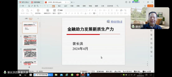 特邀中国社会科学院经济研究所研究员、中国社会科学院大学裴长洪教授为师生做题为《金融助力发展新质生产力》的线上学术讲座,会议由51看片